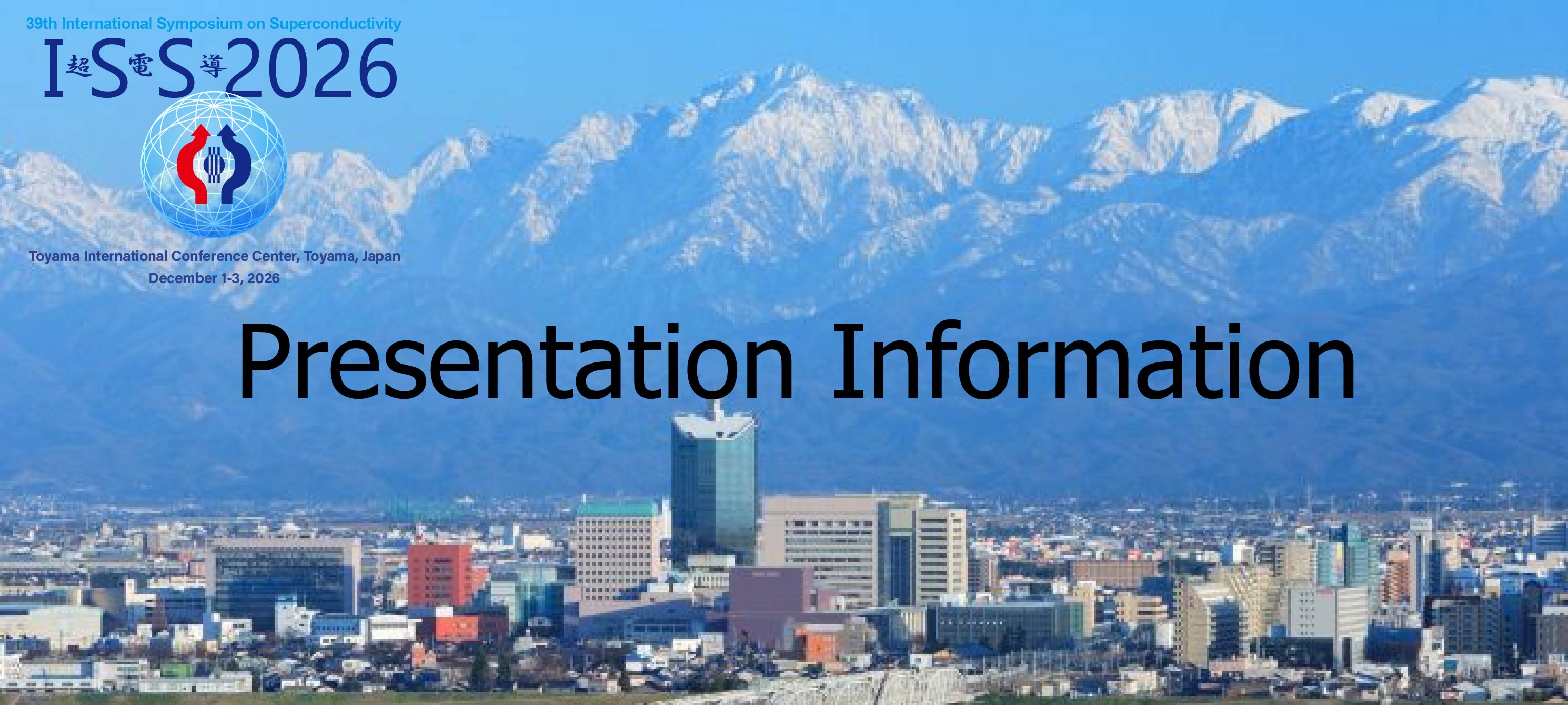 The official language of the symposium is English. As a general rule, plenary lectures are 45 minutes (including 5 minutes for discussion), invited talks are 30 minutes (including 5 minutes for discussion), and contributed oral presentations are 15 minutes (including 5 minutes for discussion). The poster session is scheduled to last approximately 60–80 minutes. All oral presentations must be made using your own computer. If you are unable to use the computer you bring, please contact the ISS Secretariat in advance. A laptop PC will be available in each presentation room; however, we cannot guarantee that it will function properly for your presentation. If you wish to change or cancel your presentation after the presentation schedule (date and time) has been finalized, please be sure to contact the ISS-Secretariat. The draft program will be released on September 25, and the presentation program will be finalized on November 2. If you must cancel your presentation due to unavoidable circumstances, please be sure to notify the ISS-Secretariat. All symposium events will be finalized on November 13. After this date, no refunds will be issued under any circumstances. If you are absent from your presentation without prior notice after this date, your presentation will be treated as REJECTED. In addition, if a no-show occurs, the corresponding proceedings manuscript will also be REJECTED. Recording presentations in any form—video, photography, or audio—without the presenter’s prior consent is strictly prohibited. Please also set your mobile phone to silent mode or turn it off while in the presentation venue.